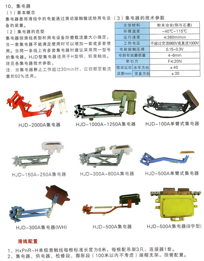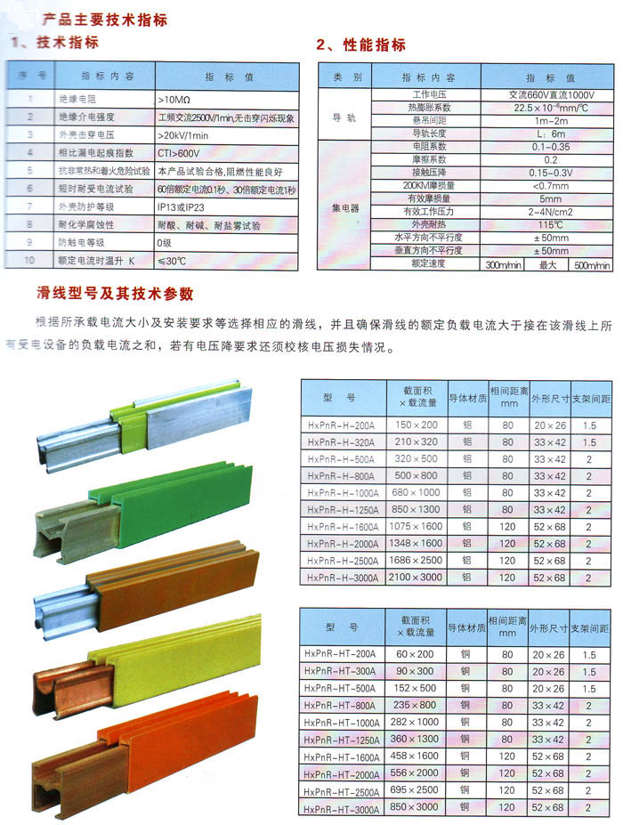 3、HXPnR-H型有鋁合金和銅體兩種材料的滑線。