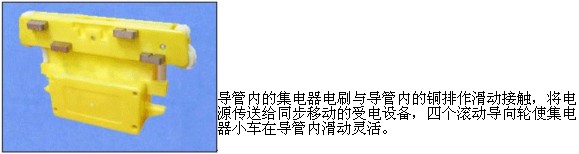 4、HXTS、HXTL(DHG)系列產(chǎn)品有輸電導(dǎo)管、集電器、正交器或同步器、導(dǎo)軌連接器、熱膨脹補(bǔ)償裝置、懸吊裝置組成,各種配件齊全,以滿足不同場(chǎng)合的要求。